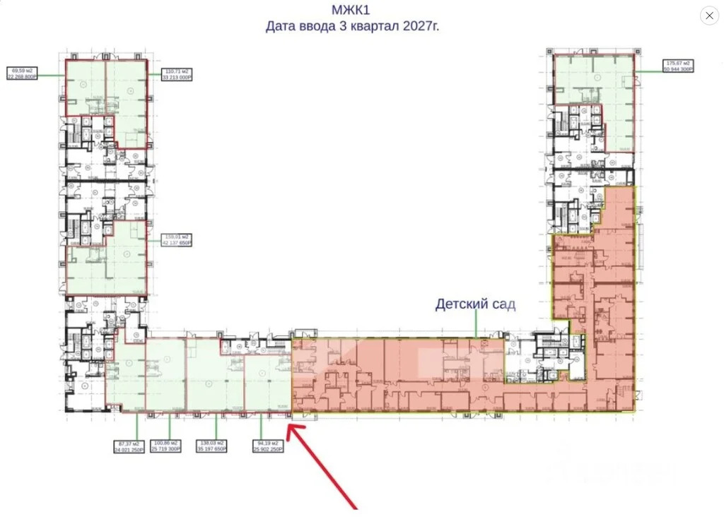 ЖК "Дюна", Жилой комплекс бизнес-класса. Предлагается к приобретению помещение свободного назначения формата Street Retail, площадью 94, 19 кв. м., расположенное на первом этаже жилого дома (корпус 1).